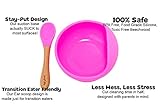 Saray’s Nest - Need more suction Put a little water under the bowl to get a stronger suction Less stress meal time just got easy with easy eats by sarays nest ear scoop design created for the new self feeders to assist in their transition 100 safe made from bpa and toxin free foodgrade silicone nontoxic beech wood spoon handle Less mess the stay put suction on the bowl base and the scoop support will help your little one learn to self feed and cut cleaning time in half