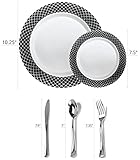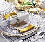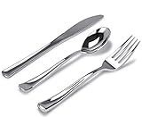 Stock Your Home - Perfect for weddings lavish parties host an elegant event impressing friends with lavish dinnerware and silverware while making cleanup easy with these plastic plates and utensils or have an intimate family gettogether celebrating not having to do the dishes Premium quality made of bpa free disposable and reusable plastic that is sturdy and durable with a feel like real silverware in your hand The plates and cutlery are not microwaveable due to the foilcoated rim