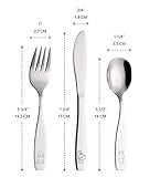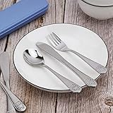 VANRA - Kids flatware service including 1 dinner fork 1 spoon and 1 dinner knife Unique design to provide good grip and reach for children Please pay attention to the dimensions before ordering Heattreated durable 1810 stainless steel construction Bpa free nontoxic product Luxury mirror polish and elegant design makes this silverware being great ideals for formal events or every use
