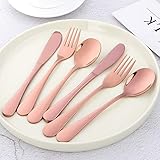 Exclusive design for children toddler silverware spoon and fork featuring with ergonomically designed for children to grip in their small hands easily Rounded fork spoon and knife without sharp edges is safe for your kids eating Encourage selffeeding its time for teach your kid to feed themselves Using this toddler forks and spoons for self feeding to help them eating independently with ease Recommended for age 3