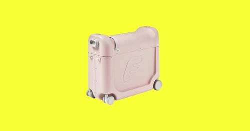 Kids can ride on this suitcase, sure. But it fits most economy seats on planes and folds out into a bed. The lid of the suitcase and the extension plate elongate the seat to create a larger surface area while the mattress and side panels create a comfortable space for kiddo to rest.