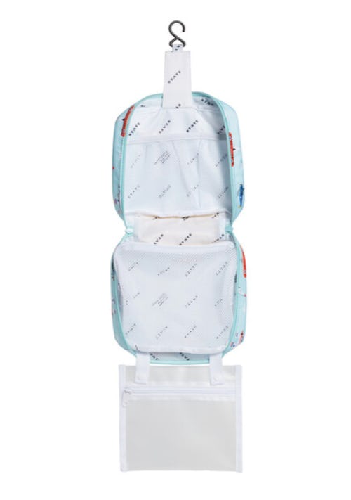 Store the aforementioned diapers, along with wipes, pacifiers, hand sanitizer, and every other baby item you need to quickly access in this hanging dopp kit, which can go to the plane bathroom with you.