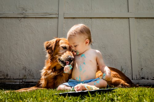 Kids and dogs make an unbeatable team. From snarfing up the crumbs under the highchair or receiving hastily sneaked food from the tray, kids look out for their pups. Dogs make excellent pillows and dress-up partners, and kids give dogs food, love, and belly scritches, making for great friendships and partnerships.