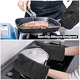 Easy to storethe kitchen oven mitts and pot holder come with rope design so it is easy to store and hang them via the suspension rings when you are not using save your room and make your kitchen look more cleaner 500f heat resistentnonslip this oven mitts heat resistant 500 degrees because of the durable construction so it can effectively keep you protected from burning while you enjoy cooking and grilling Safe for grabbing pots pans baking sheets etc