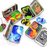 Airtight smell proof our tight silicone seal jars is completely smell proof and holds your contents with no worry of any telltale odors escaping Carry the lip balm spices wax painting creamsticky gel crumble concentrate medicine or pill you need worry free Content 25ml silicone jar 1silicone holder tray 1 3 long carving tool 1 tin box size 386l244w087h 3 randomly style waterproof psychedelic vinyl decals sticker our containers made from 100 food grade siliconebpa free