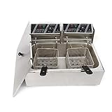 Electric deep fryer wbasket lidlets you fry two different foods at two different temperatures It can saving your time to make the different food Single tank capacity is 6l total is 12lSuitable for buffalo wings chicken dumplings egg rolls shrimp rolls french frieschurros etc