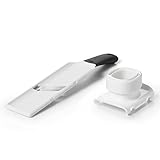 OXO - Textured ramp prevents food from sticking Food holder snaps horizontally over blade for safe compact storage Soft comfortable nonslip handle Integrated food chamber keeps garlic contained and protects hands while slicing Creates even thin garlic slices quickly and safely with a sharp angled bidirectional stainless steel blade