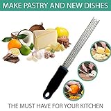 stainless steel citrus zester cheese grater is a hand held appliance that will let you to grate cheese chocolate coconut lemon or orange zest for cooking salads pizza italian mexican chinese japan food You will have an ability try to cook something new that you have never been cooked before It has convenient handle for hands protection and storage Both the food slicer and cheese grater can be cleaned in dishwasher
