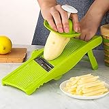 KEOUKE - Premium material mandolin julienne cutter is made of abs materials without bpa The blade is made of stainless steel which is very sharp Safe use of mandolin grater kitchen slicer contains a hand guard that will not hurt your hands when cutting french fries cucumber slices lemon slices and potato chips Easy to clean food slicer does not need to be disassembled after use it can be cleaned by rushing water