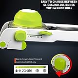 Six modes to adjustthere are 6 modes to choose you dont need to buy several tools to meet all your slicing and grating needs Our mandoline slicer cutter chopper and grater makes the work easy Just adjust the knob 1 to 6 then you can choose almost 0mm9mm slices and 45mm 9Mm julienne with the sharp blades The adjustable mandoline slicer can be a great kitchen helper for you