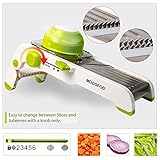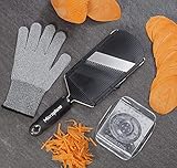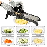 VEKAYA - Original design for safe mandoline slicer we have all the slicing options buildin the mandoline slicer Rotary the switch to change the cutting options no need to touch the bladeever Also we have a holder and a pair of cutting resistance gloves in this mandoline slicer set to protect you from any injury Using mandoline slicer to save prep time allows you save much time preparing food and help you cook like a pro With the mandoline slicer cutting and chopping vegetables and fruits will become a pleasure The vekaya mandoline slicer will also be a perfect gift for anyone who cook at home Also vekaya mandoline slicer can be a good choice for wedding gift or new home gift