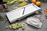 Unmatched quality functionality the latest mandoline model from mueller offers superior functionality and value With 5 new ultra sharp blades non slip food container compact design for easy storage and much more this new mandoline pro is everything you need in one