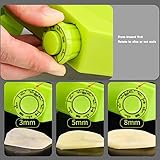 Flexible design no need to change the blade just turn the knob to control the distance of the blade to get the desired slice effect Multipurpose vegetable fruit slicer adjust blade distance 09mm can slice 35mm and 55mm can shred suitable for potatoes lemon orange cucumber cheese french fries