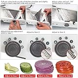 VEEAPE - Durable blade easy to clean the detachable stainless steel rotating blade is thicker than in other brand ensures that the vegetable cutter has a long enough life and is strong enough Our design reduces tomato slicers parts as much as possible easy to clean under running tap or dishwasher Adjustable mandoline slicerthe mandoline food slicer with 6 size adjustment display and build in rotating adjustable blades you can get perfectly flat slices 1 to 6 mm and 36 mm julienne As a food grater vegetable cutter julienne slicer potato slicer tomato slicer onion slicer etc