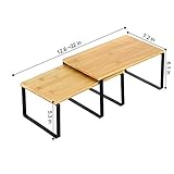 NEX - Make of solid bamboo and metal construction perfect for home decorations with natural feelings Approximate measures low shelf 117l x 72w x 53h High shelf 117l x 72w x 61h The counter shelves can hold up to 33 lb each Stackable and expandable Place the two shelves stacked nested side by side or in an l shape to fit your space Say bye to the messy spice bottles and cans Shelf dividers for kitchen cabinet counter cupboard or pantry organization can get more storage spaces