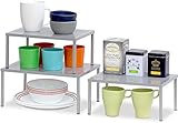 SimpleHouseware Expandable Stackable Kitchen Cabinet and Counter Shelf Organizer, Silver
