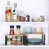 SONGMICS - Where is a shelf missing The messy counter cabinet or pantry Bring these 2 shelves home to extend your storage spice bottles canned goodsall of these chaosmakers can be tamed Style your kitchen when natural bamboo meets sturdy metal whats gonna happen A charming counter shelves set You can show it off on the counter and make it a practical eyecatcher to spice up your kitchen Up down left right place the two shelves stacked nested side by side or in an l shape to fit your space with a clever customizable design your imagination is the only limiting factor