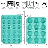 Easy baking and release nonstick surface and flexible just pop out with pressed finger easy to release and clean regular 12 cups and 24 mini cups muffin pan set is impermeable practicality and durability Wide heat resistant range 104 to 44640 to 230 tasteless safe for oven microwave dishwasher fridge freezer Just feel free to enjoy much healthier treats with your family and friends
