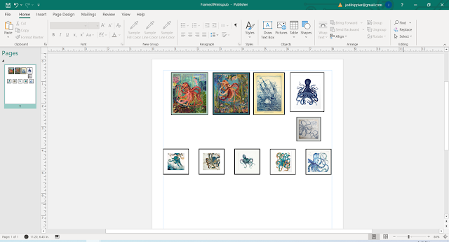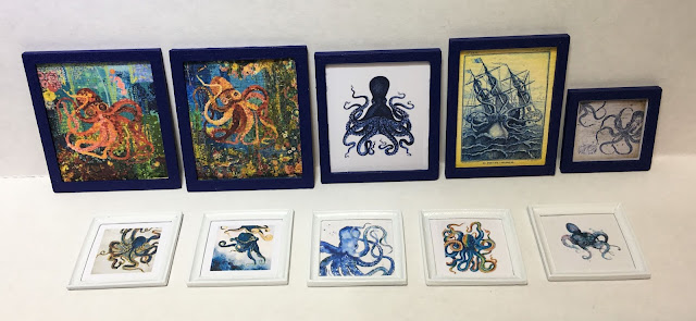 I knew I wanted to include a variety of octopus art that Tasha could display and exchange on the shelves or walls. Once I had them found, saved and printed, I needed several frames.