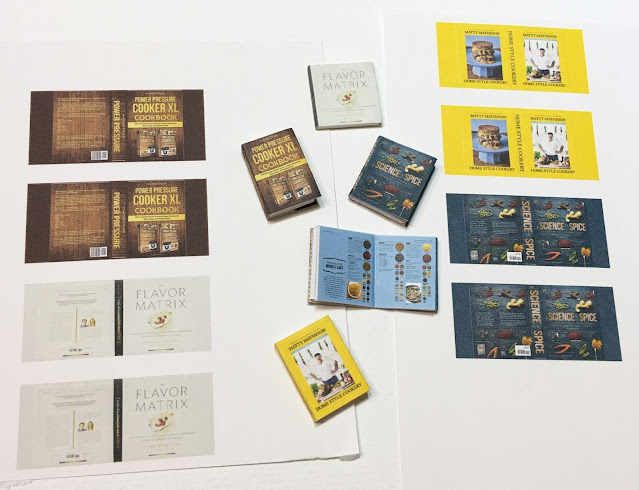 I also made her some cookbooks. I got her an Insta Pot pressure cooker for Christmas year before last, along with a book that had tons of recipes. She loves it and uses it all the time. I knew I'd have to make one in mini for her kitchen, too. I bought the Matty Matheson cookbook for my son last fall as a "just because you're awesome" gift. He loved it so much he brought it to Tasha's and they cooked the steak recipe together. She said she'd never cook steak any other way again and ordered the cookbook herself the next day. The other two cookbooks are very science-y, which she will love. She is getting the real life sized Science Of Spice book for her birthday, too. Don't tell! ;O) I made one of them open and with flipping pages that she can use to set up scenes in her kitchen.