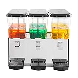 Wide application this commercial multifunctional juice dispenser is convenient for prosperous catering businesses such as chain restaurants convenience stores hotels gym clubs etc To contain different kinds of drinks including soybean milk milkshake juice cocktail yogurt coffee etc Large capacity with triple 48 gallons 18l3 tanks this juice dispenser can hold a great number of drinks The broadened mixing leaf reduces sediment and stirs drinks 360degree Rubber gasket prevents juice leakage from the motor