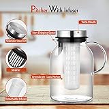 Superior material no worry for boiled water the pitcher is made of borosilicate glass which is lighter but stronger than regular glass hand blown heatresistant and 100 leadfree and bpa free Withstanding a temperature of 0 to 300 can hold either ice water or hot water which is much safer and healthier than the plastic pitcher Stainless steel lid is heat resistant and durable