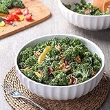 Elegant design the pumpkinlike design of these serving bowls ensure a timeless beauty and simple classic white bowls go well with other tableware Sturdy enough for daily use while being attractive enough for special occasions Generous size large serving bowls set of 2 975 l x35 h 27 quarts85 oz these deep bowls are big enough to toss a salad in or serve a pot of soup perfect size for fruit pasta veggies ramens pho family meals or other large servings