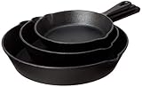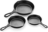 Simple Chef - Heavy duty cast iron skillets are a timeless musthave for every kitchen The simple chef cast iron skillet 3piece set is virtually indestructible and will last years decades and generations to come Ready to use the skillet set is ready to use straight out of the box They are factory preseasoned which is much more effective than at home preseasoning Factory preseasoning makes our cast iron skillets virtually nonstick easy to clean protected against scratches and will also make your food rich in flavor Multifunctional our cast iron cookware is multifunctional and suitable for many different cooking methods Use our skillets on the stove top in oven over a campfire and even when slowcooking Our set is great for frying sautéing cooking grilling and more