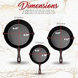 Pre-Seasoned Cast Iron Skillet 3-Piece Set (10/8/6 Inch Set) – Oven/Grill/Stovetop/Induction